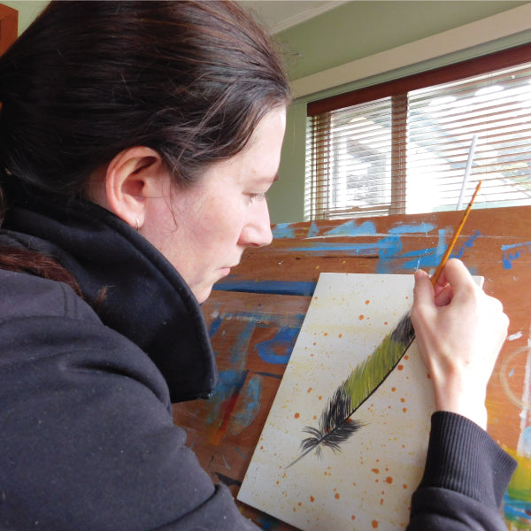 'Feel Free' PAPER PRINT ONLY (NO FRAME) from an original painting based on a Yellow Tailed Black Cockatoo feather. A feather is a symbol of freedom, lightness and hope.